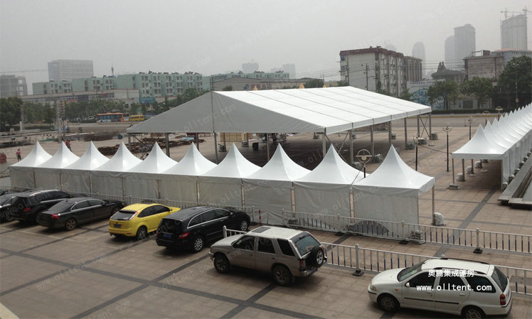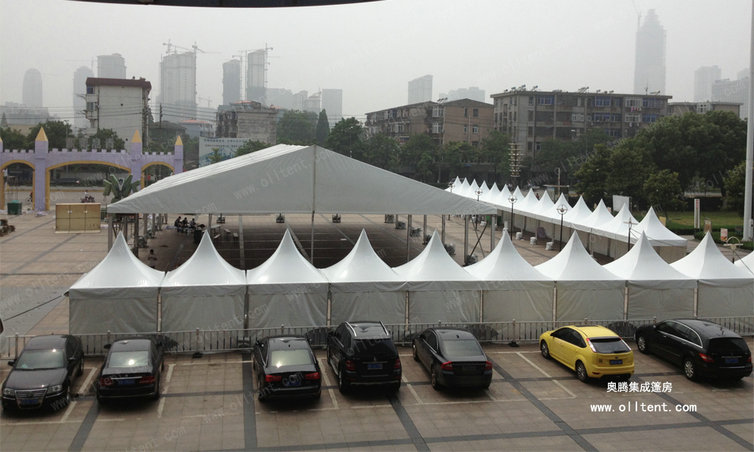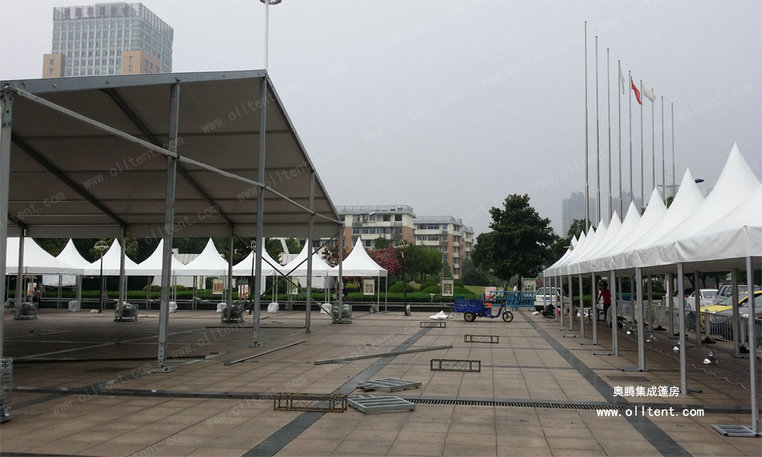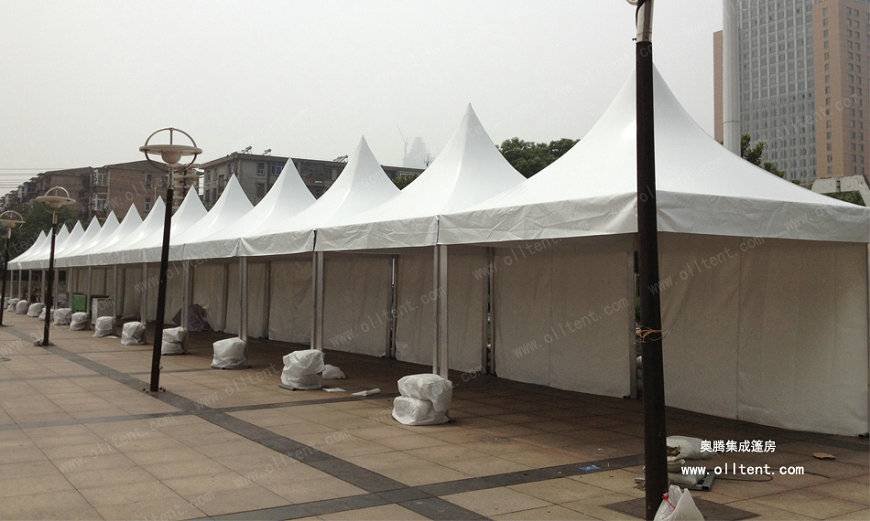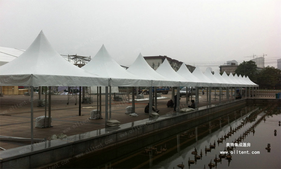 尖頂篷房優(yōu)雅,堅(jiān)固,潮流,搭建工期短,易于組裝和拆卸。新錐頂篷固定方式,已獲得設(shè)計(jì)專利證書,新的固定方式,不但大大減少了組裝時(shí)間,很好的防止滑出。無需大型機(jī)械協(xié)助,單個(gè)也可用排水槽連接起來組成更大的面積,形成特殊的造型。